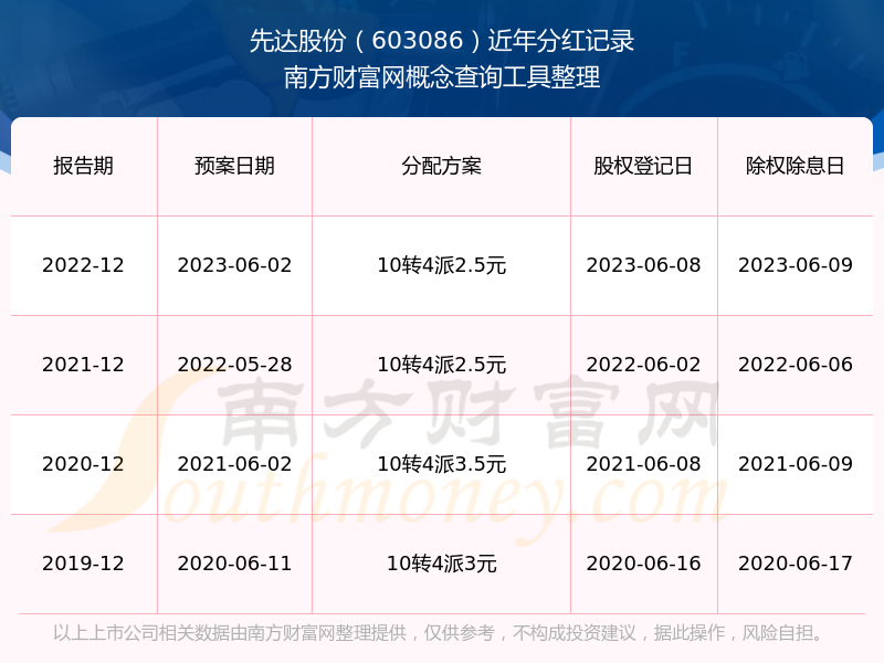 一、先達(dá)股份(603086)股票分紅記錄
