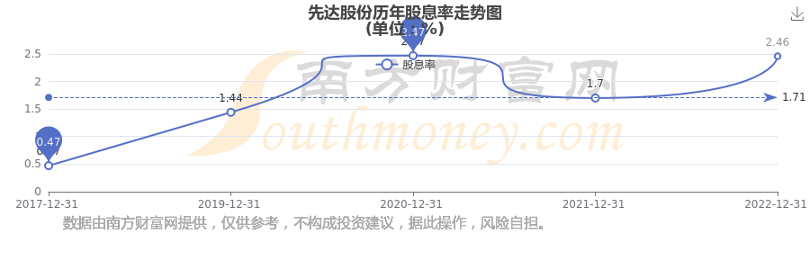 近年先達(dá)股份年度股息率走勢(shì)如下圖: