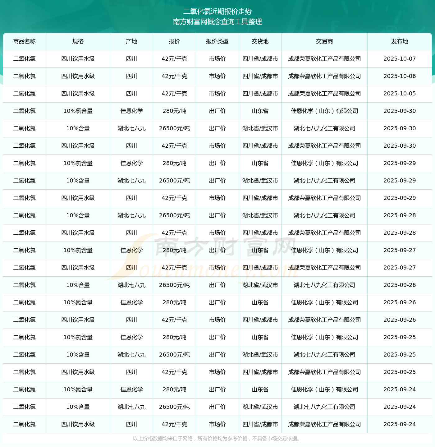 2025年10月7日二氧化氯報(bào)價(jià)詳情一覽表