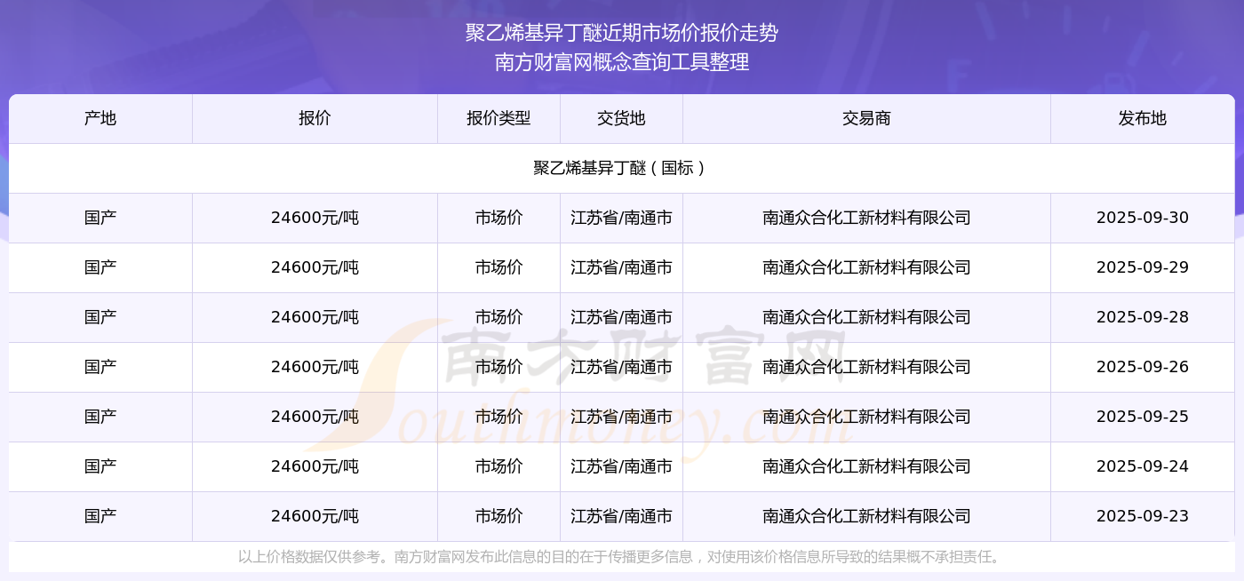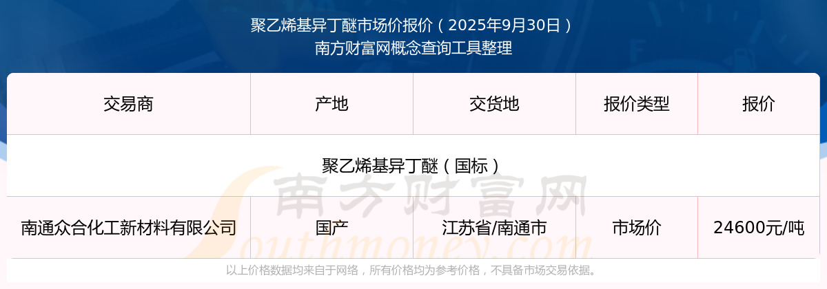 聚乙烯基異丁醚市場價報價行情(2025年9月30日)