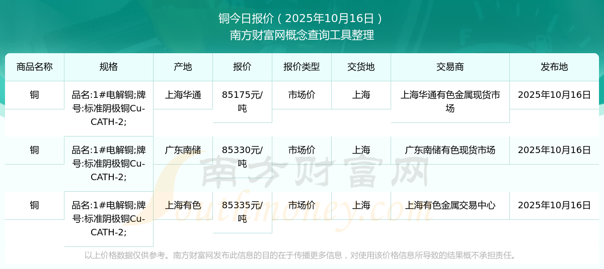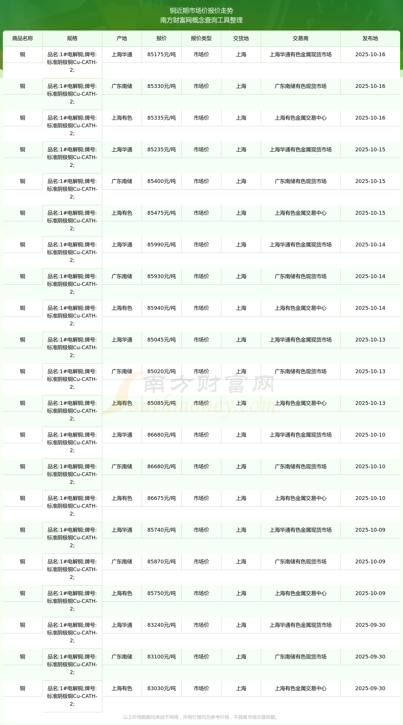 2025年10月16日銅市場價(jià)報(bào)價(jià)詳情及近期市場價(jià)報(bào)價(jià)走勢