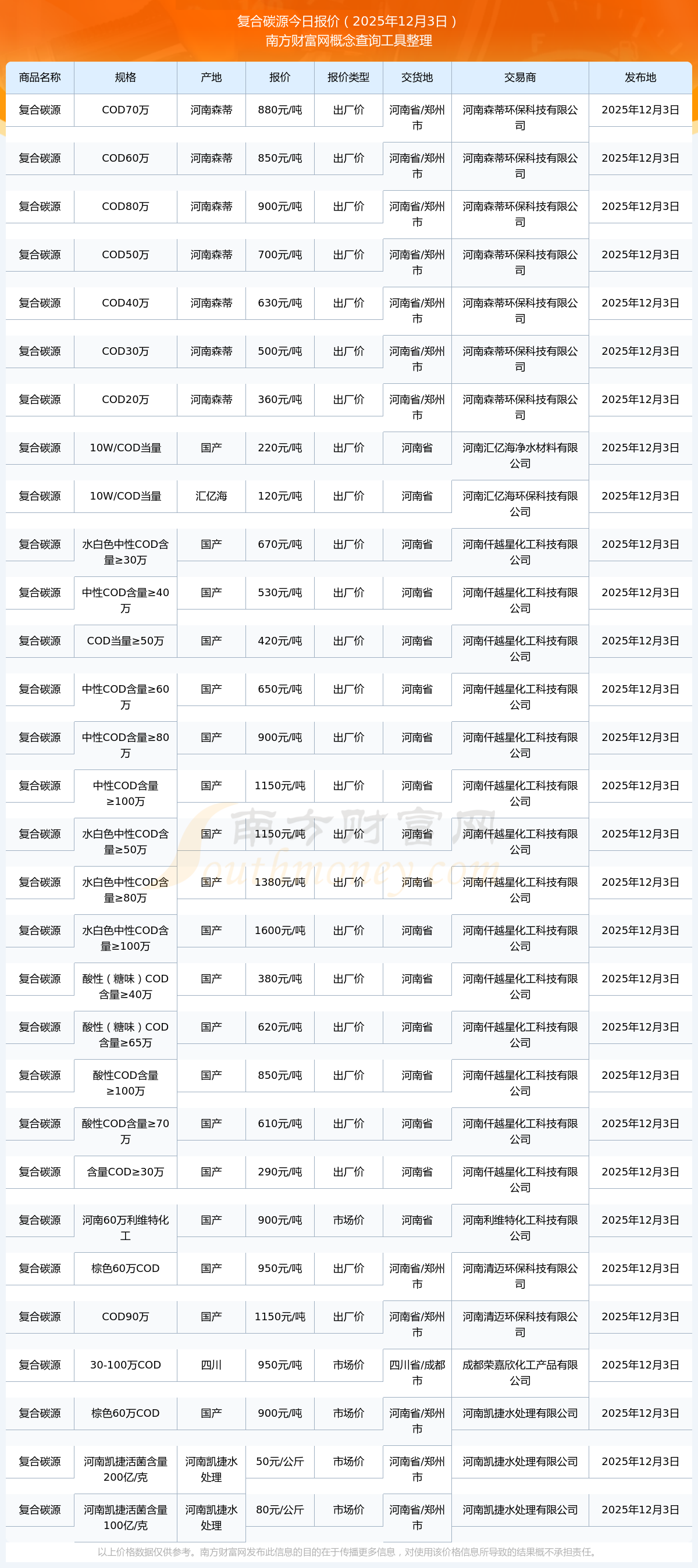 2025年12月3日復(fù)合碳源報價行情及近期報價走勢