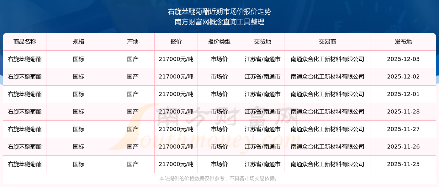 右旋苯醚菊酯市場價報價行情(2025年12月3日)