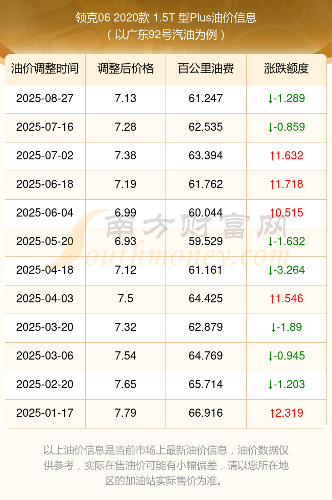 領(lǐng)克06 2020款 1.5T 型Plus真實(shí)油耗多少?(10月10日)92、95號汽油價(jià)格一覽表