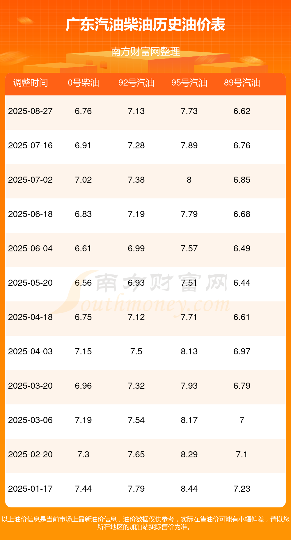 - 2025年福建龍巖歷史油價(jià)調(diào)整查詢表一覽89號