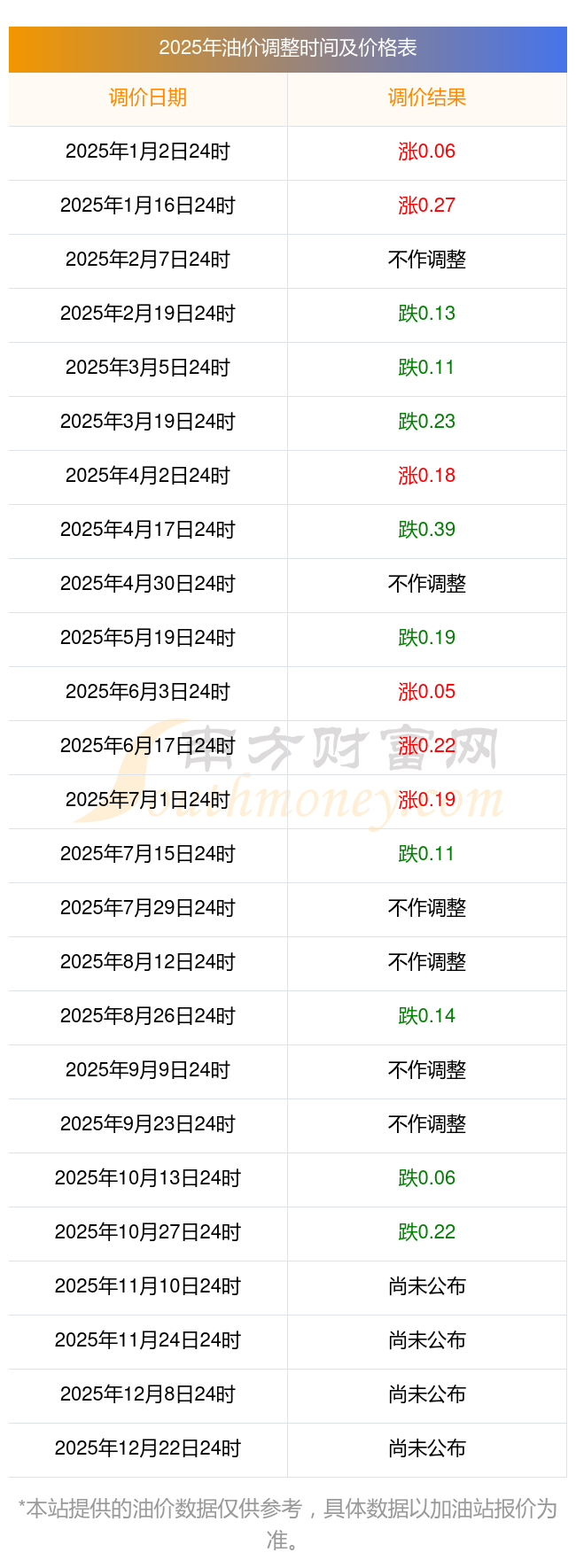 2025年青島城陽(yáng)區(qū)11月6日汽油價(jià)格調(diào)整時(shí)間表