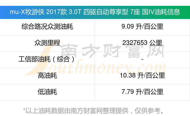 mu-X牧游俠 2017款 3.0T 四驅(qū)自動(dòng)尊享型 7座 國(guó)IV動(dòng)力上配備的是一臺(tái)3.0T177馬力L4渦輪增壓發(fā)動(dòng)機(jī),匹配的是5擋手自一體自動(dòng)檔變速箱,燃料形式為柴油,常規(guī)整備質(zhì)量2100kg,廠家參考價(jià)25.38萬(wàn)元。