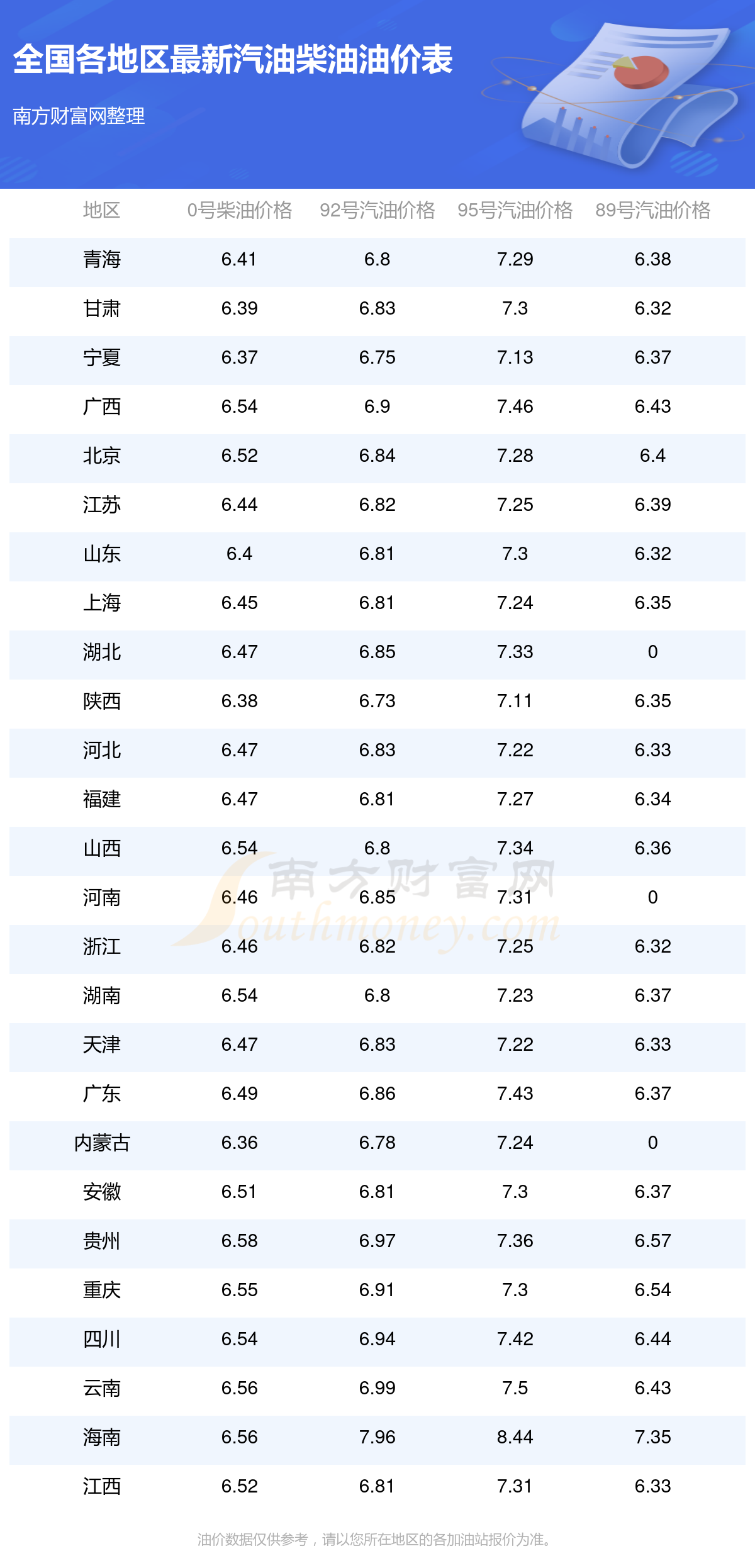 本站提供的油價(jià)數(shù)據(jù)僅供參考,具體數(shù)據(jù)以加油站報(bào)價(jià)為準(zhǔn)。