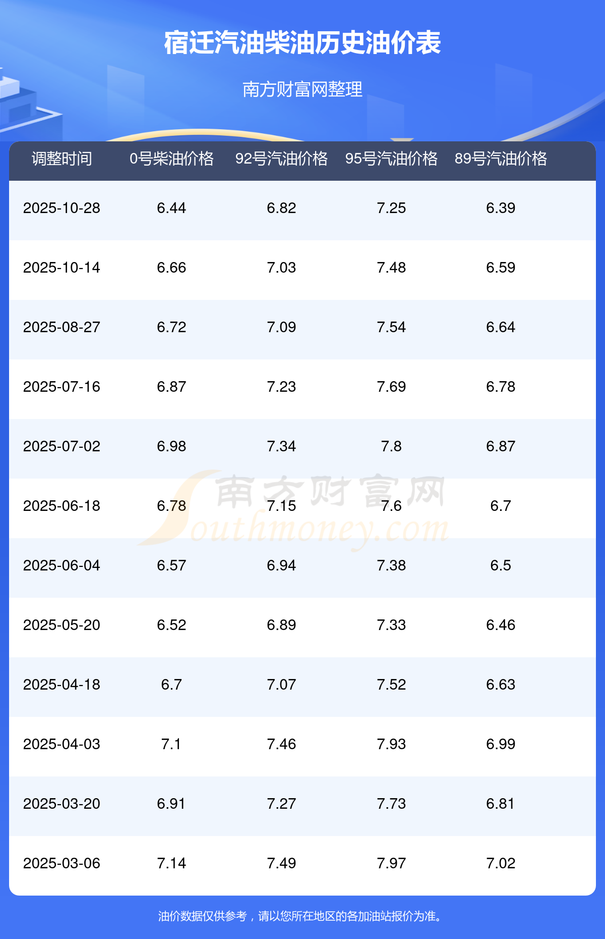 油價(jià)數(shù)據(jù)僅供參考,請(qǐng)以您所在地區(qū)的各加油站報(bào)價(jià)為準(zhǔn)。