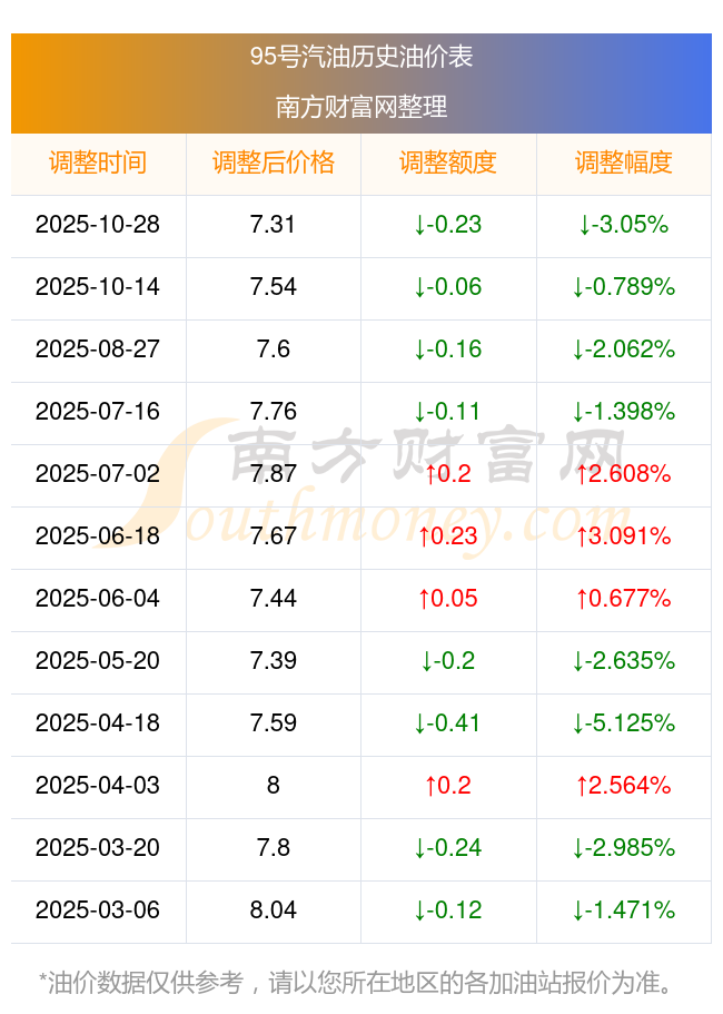 油價調(diào)整最新消息:下一輪油價調(diào)整時間11月10日24時。11月6日河南汽油、柴油的價格為10月28日調(diào)整后的價格。每升最新價格為:92號汽油6.85元,降了0.21元;95號汽油7.31元,降了0.23元;0號柴油6.46元,降了0.22元。