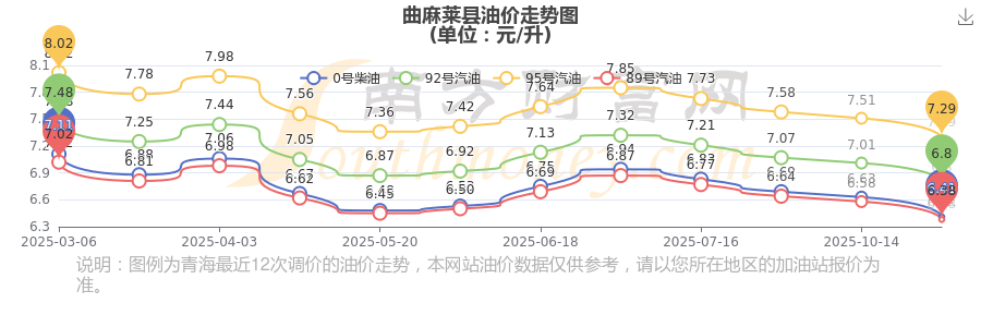 曲麻萊縣11月6日0號柴油歷史油價調(diào)整走勢圖