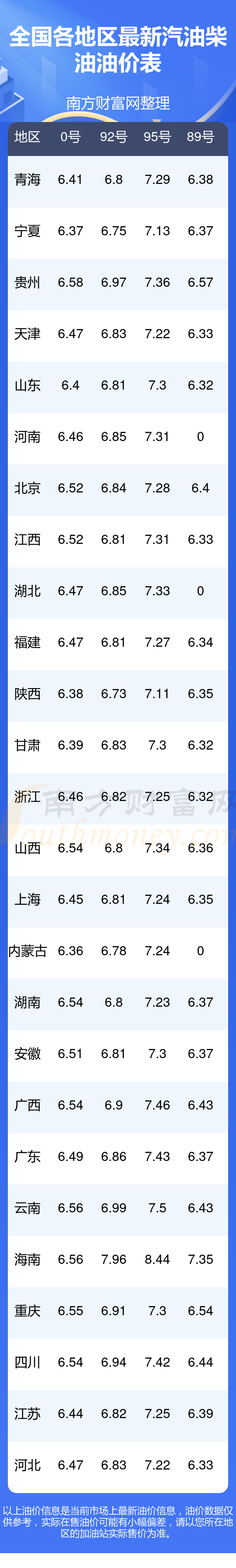 2025年11月6日全國(guó)油價(jià)調(diào)整及最新汽油價(jià)格表
