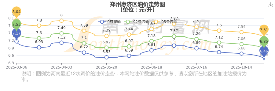 鄭州惠濟(jì)區(qū)11月6日95號(hào)汽油歷史油價(jià)調(diào)整走勢(shì)圖