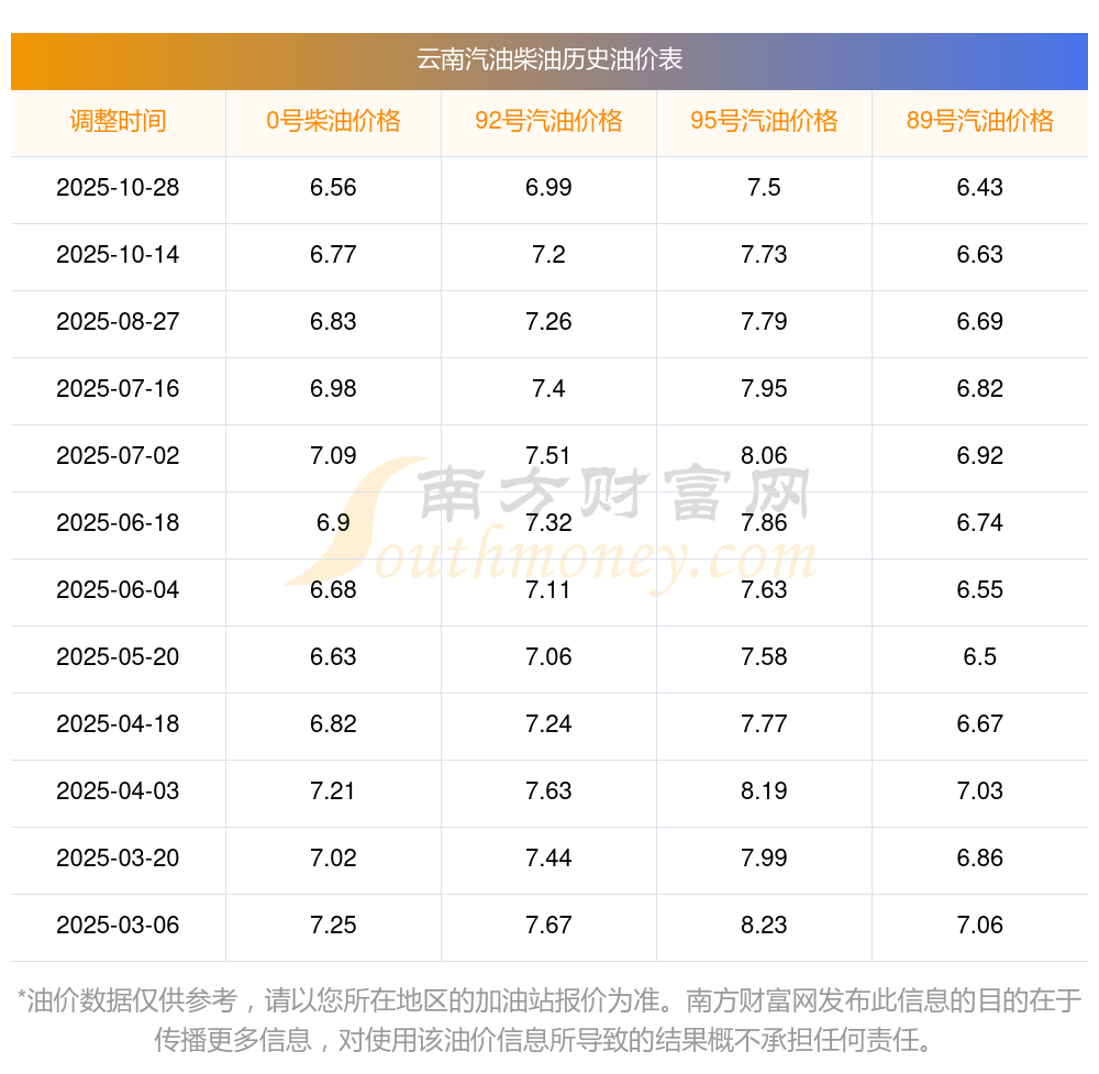 11月6日,云南92號汽油的價格是6.99元每升,本次的調(diào)整時間為10月28日,對比上次的調(diào)整下調(diào)了0.21元,下調(diào)2.917%,11月10日24時為下一輪油價調(diào)整時間,還有4.42天。
