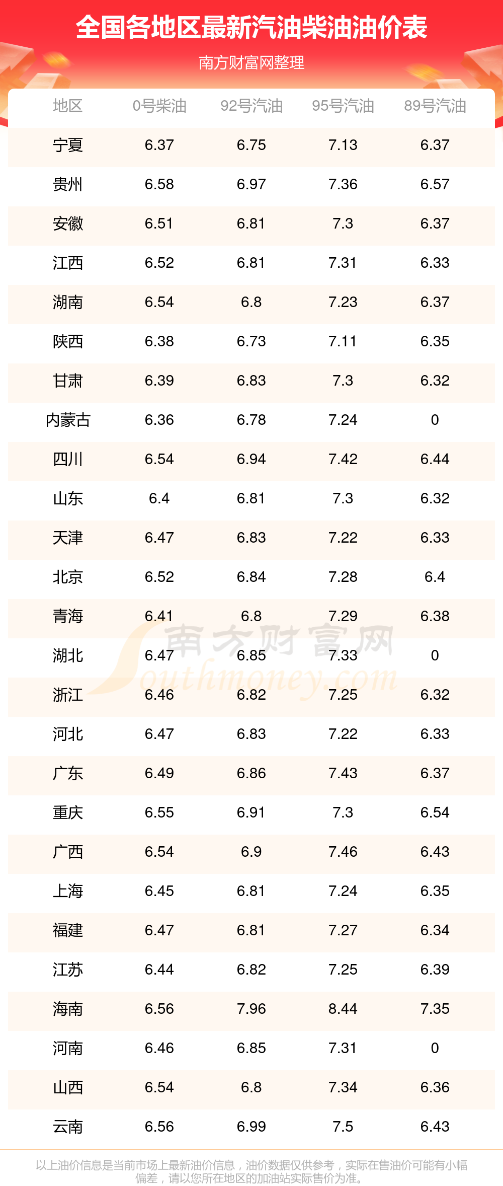 2025年金堂縣11月6日汽油價(jià)格一覽表