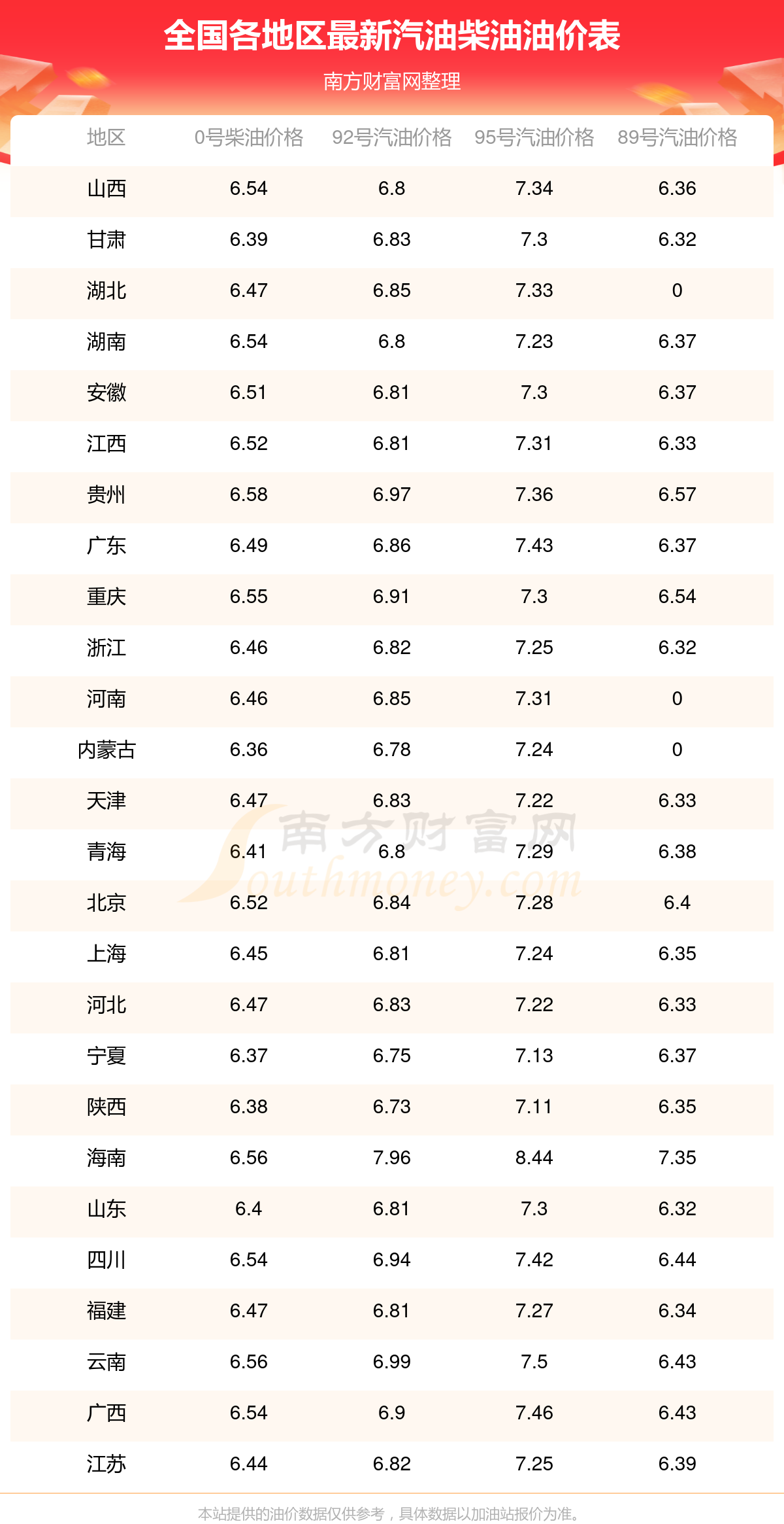 2025年11月6日全國(guó)油價(jià)調(diào)整及最新汽油價(jià)格表