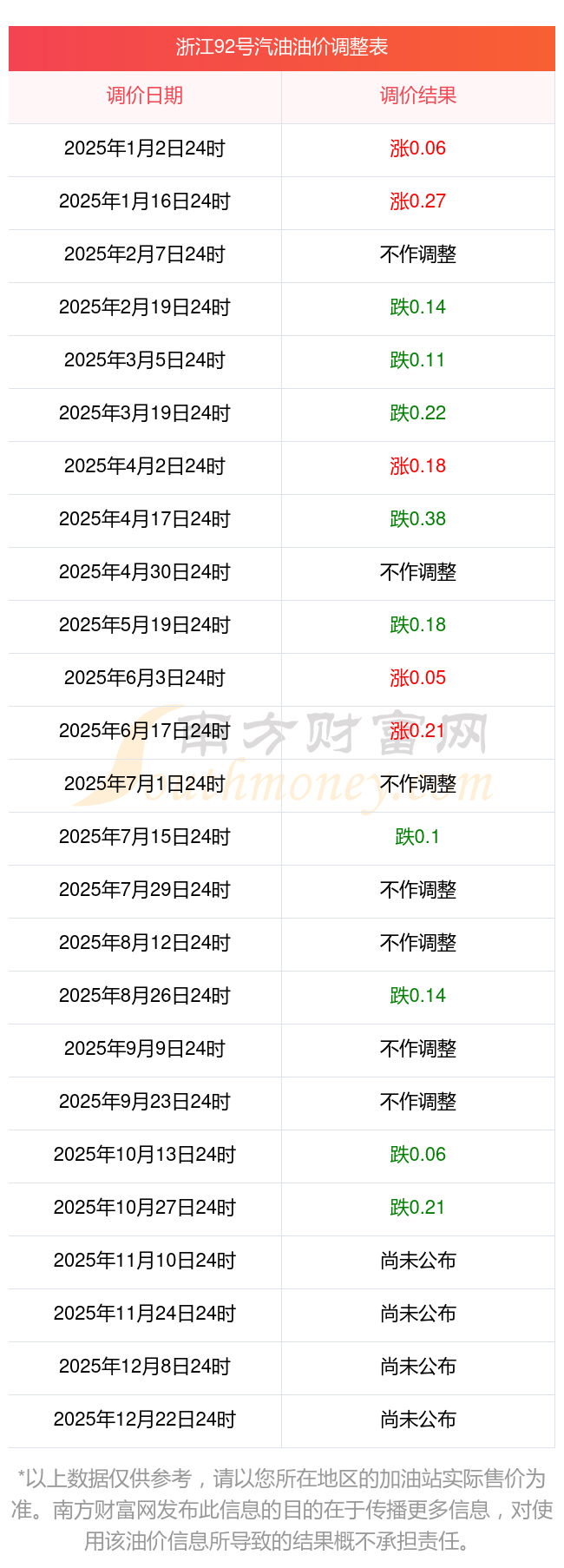 杭州2025年油價(jià)調(diào)整時(shí)間及最新價(jià)格表