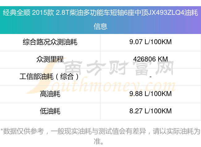 以上油耗數(shù)據(jù)由南方財富網(wǎng)整理提供,僅供參考。