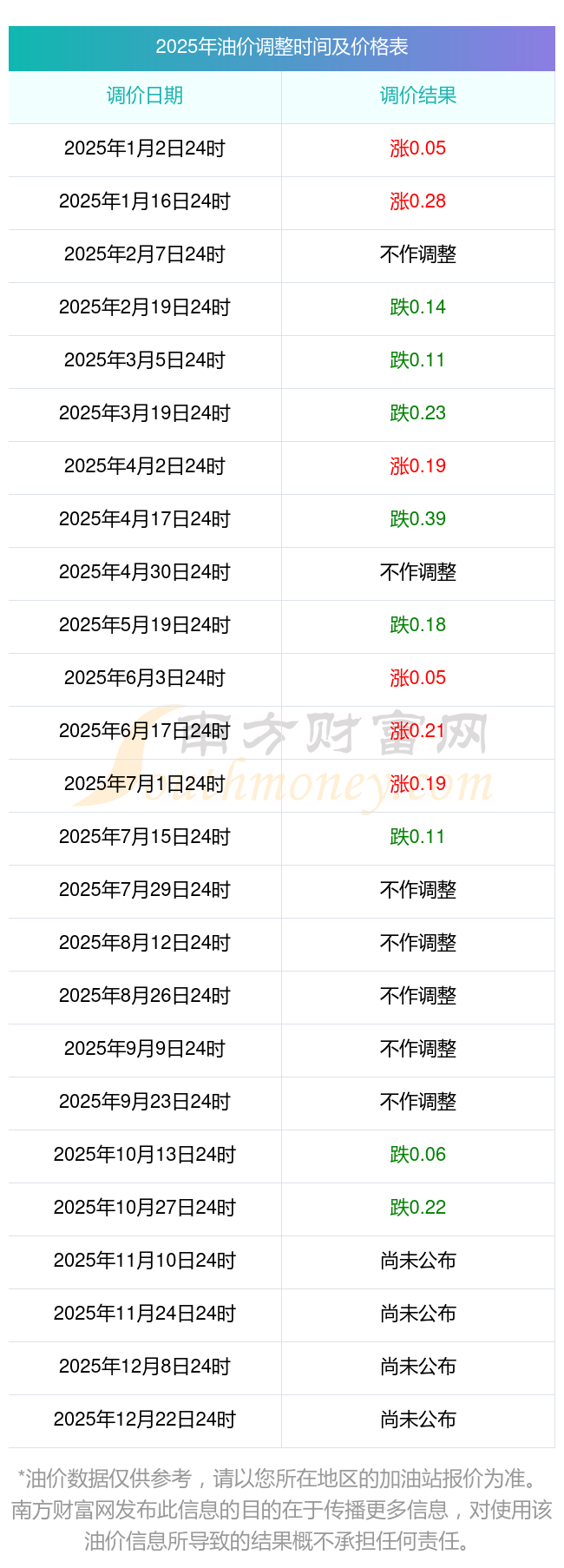 2025年成縣油價(jià)調(diào)整時(shí)間表