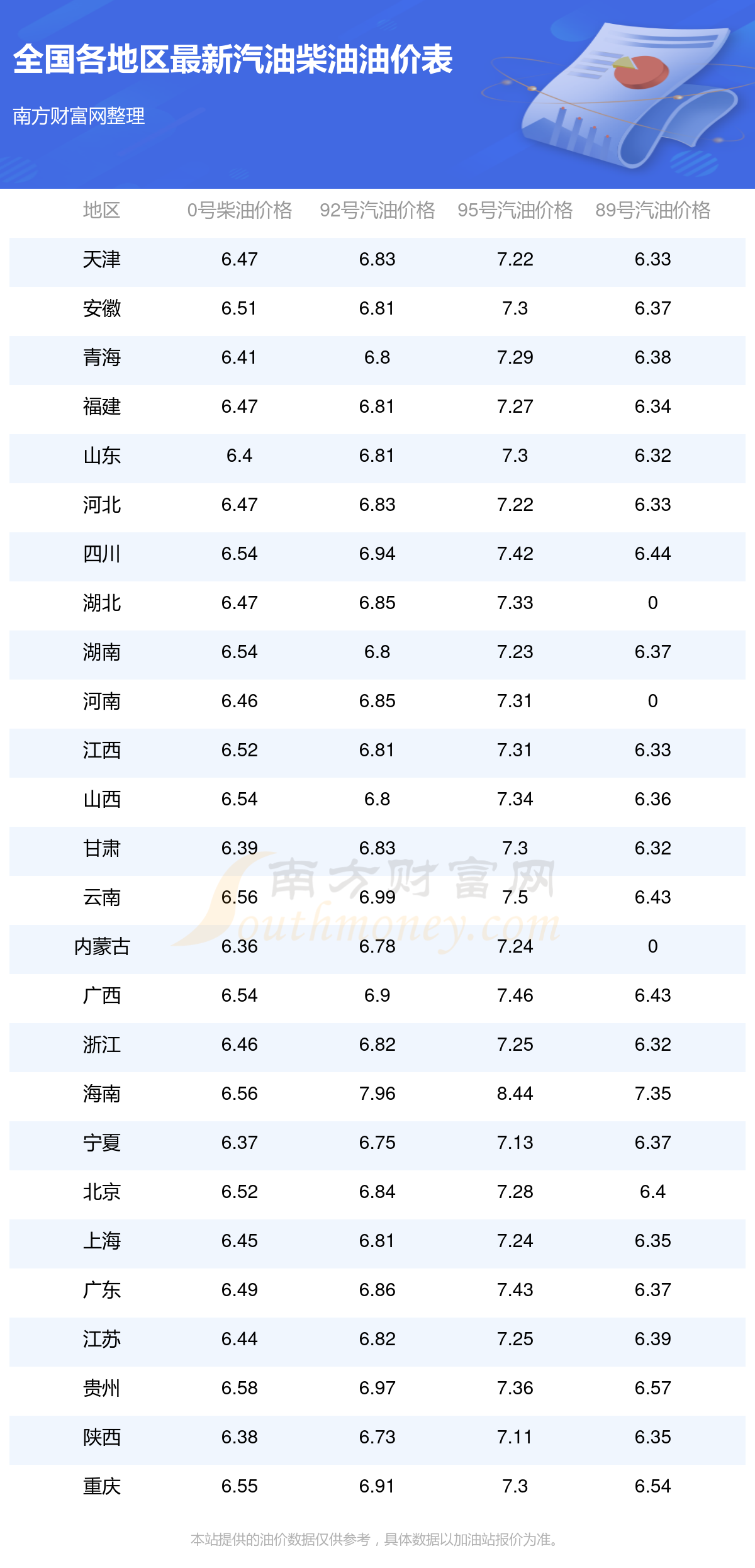 全國各地區(qū)最新油價表