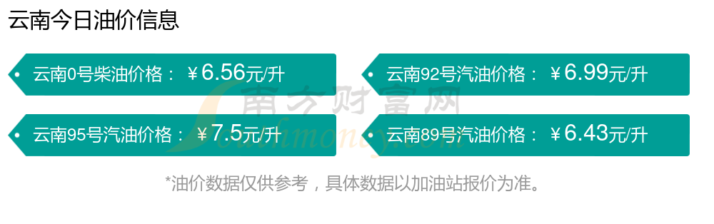 油價數據僅供參考,請以您所在地區(qū)的加油站報價為準。南方財富網發(fā)布此信息的目的在于傳播更多信息,對使用該油價信息所導致的結果概不承擔任何責任。