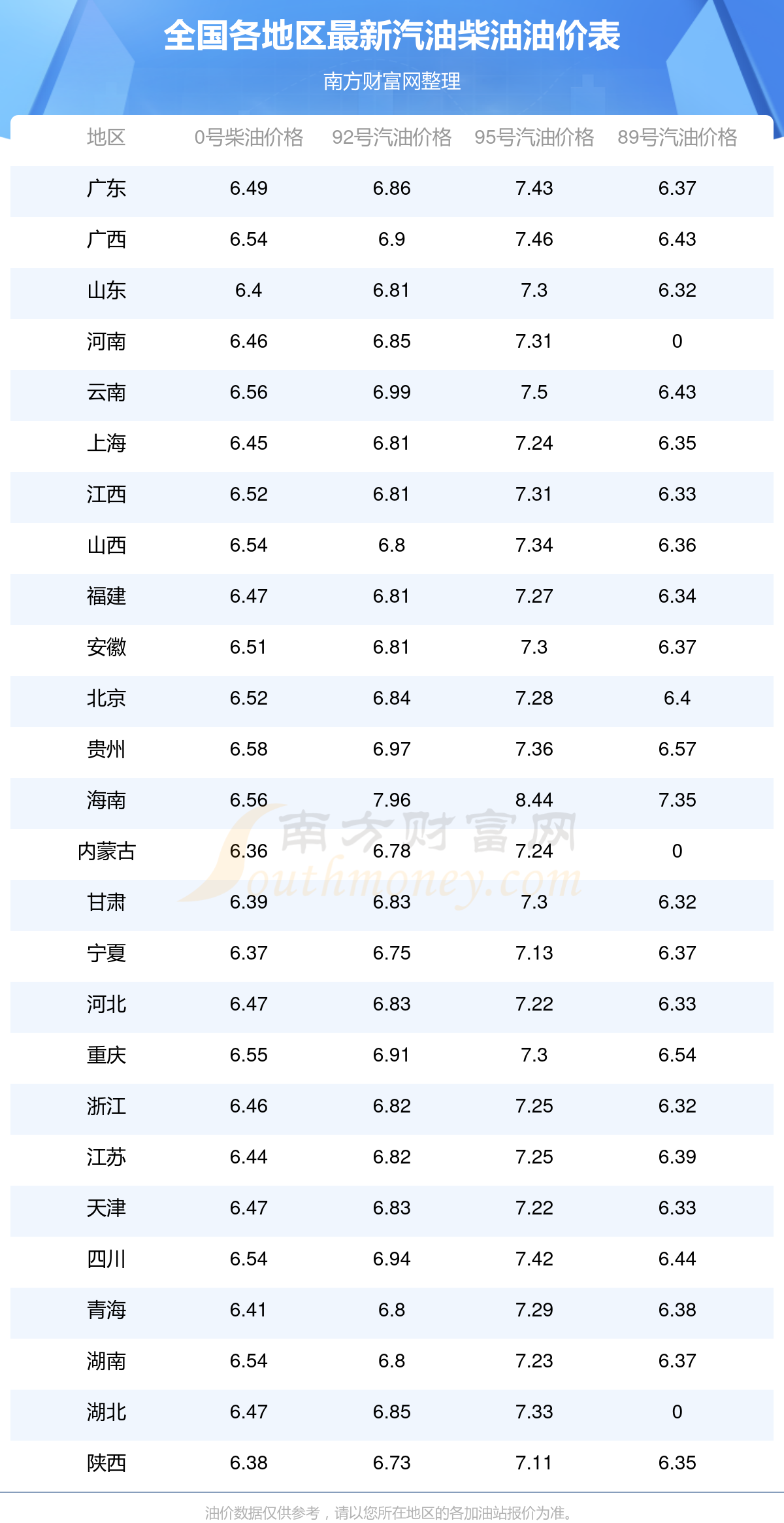 2025年11月7日全國(guó)油價(jià)調(diào)整及最新汽油價(jià)格表