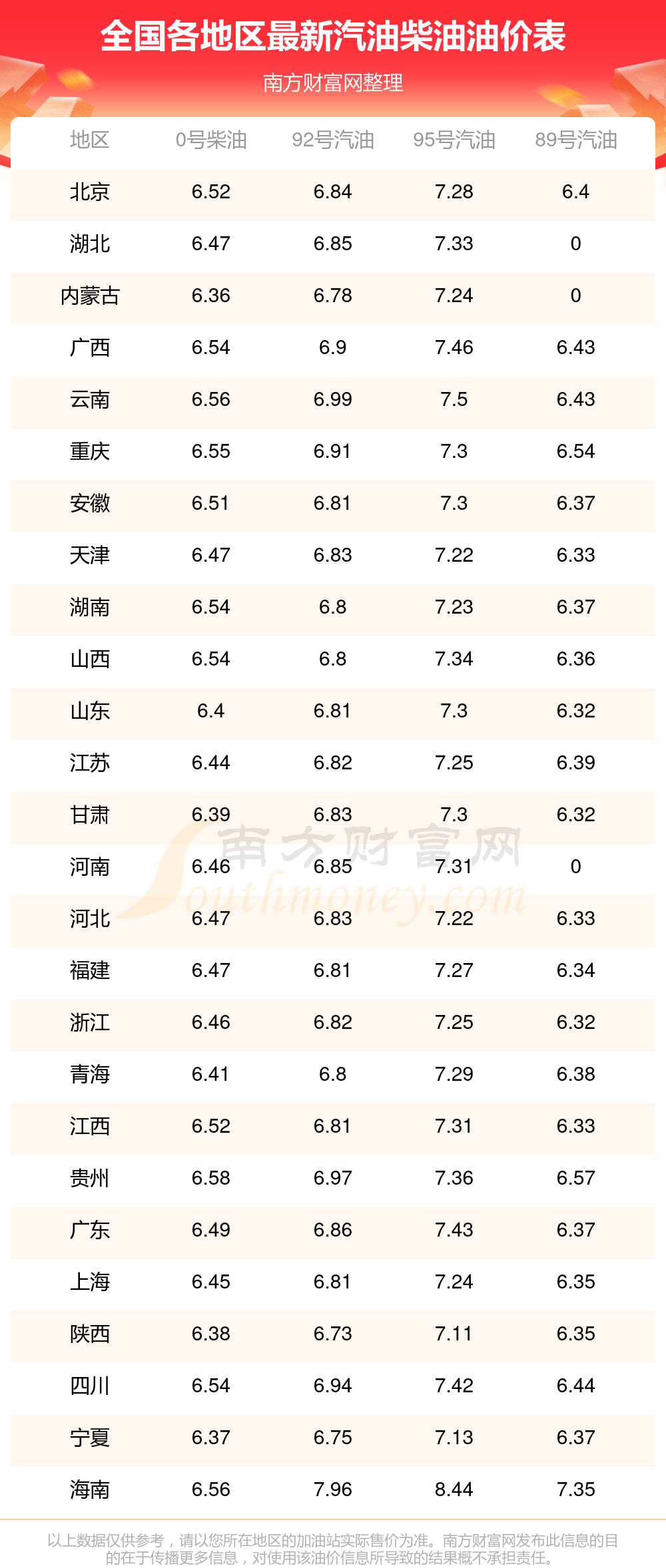 2025年11月7日全國(guó)各地汽油價(jià)格一覽表