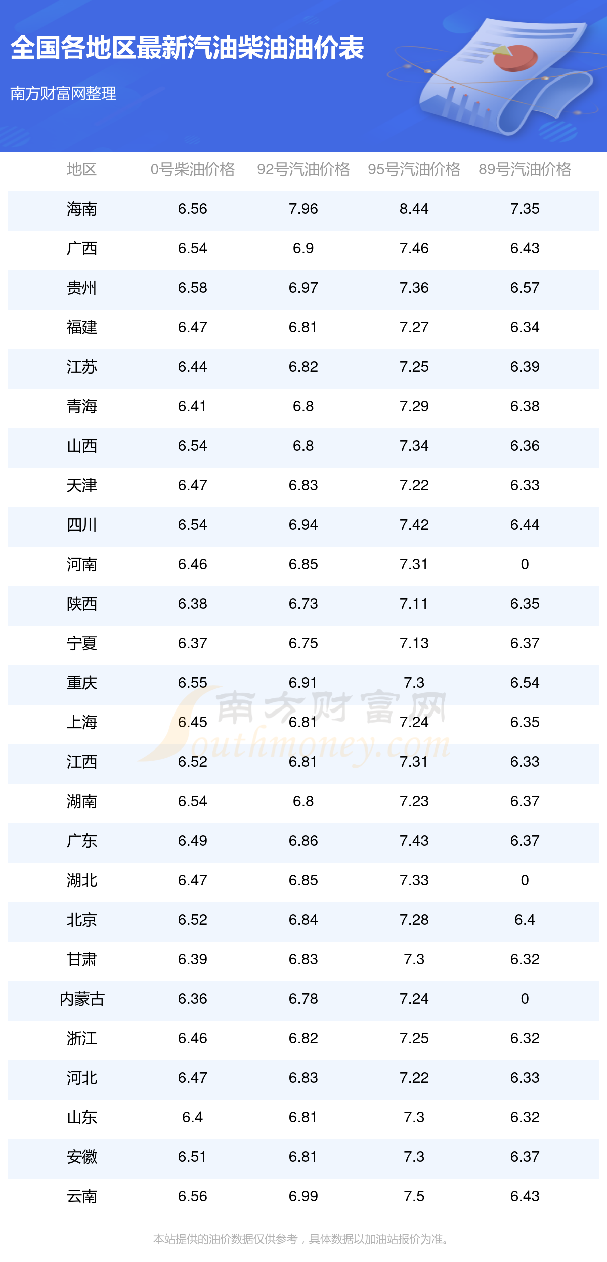 2025年11月7日全國(guó)油價(jià)調(diào)整及最新汽油價(jià)格表