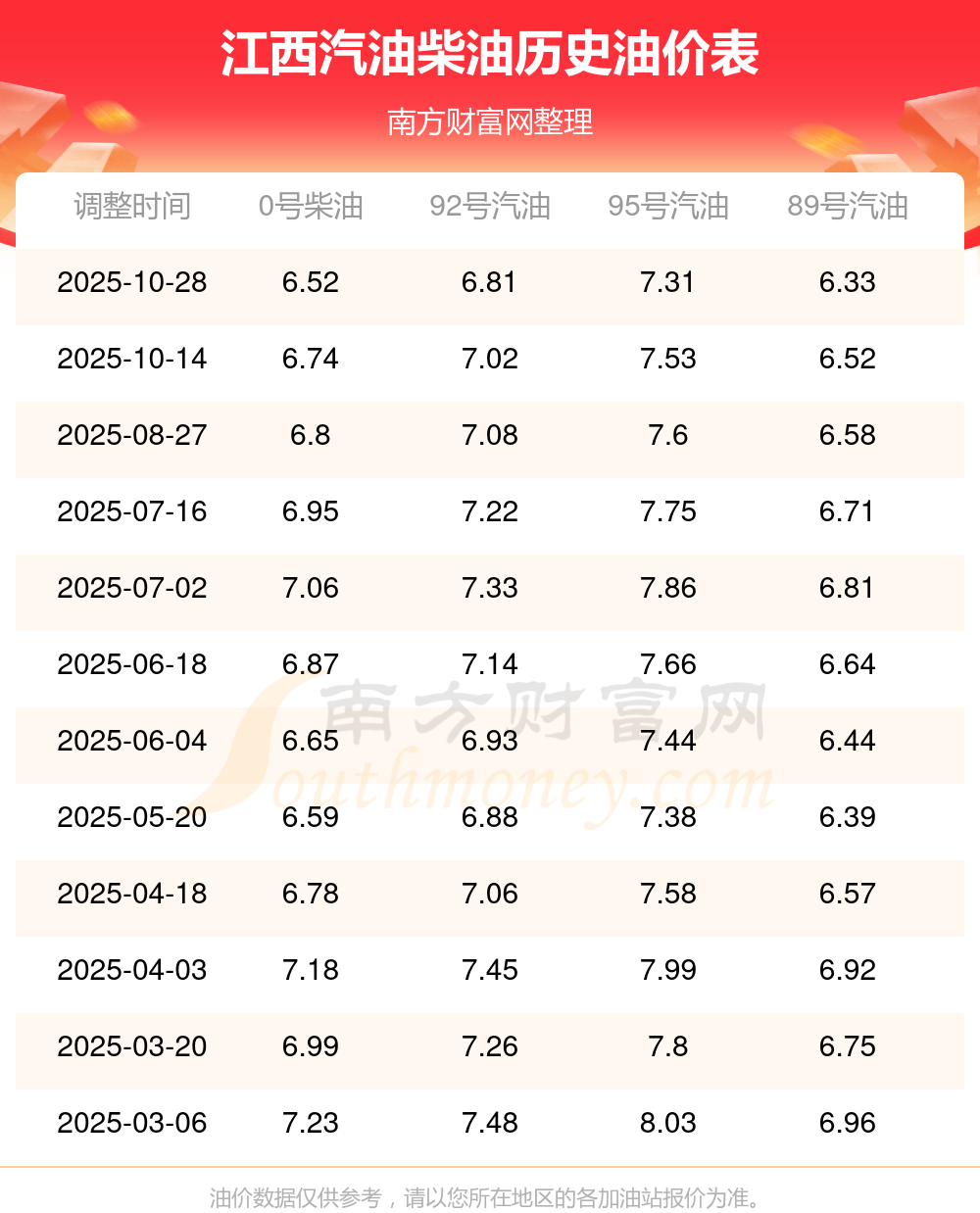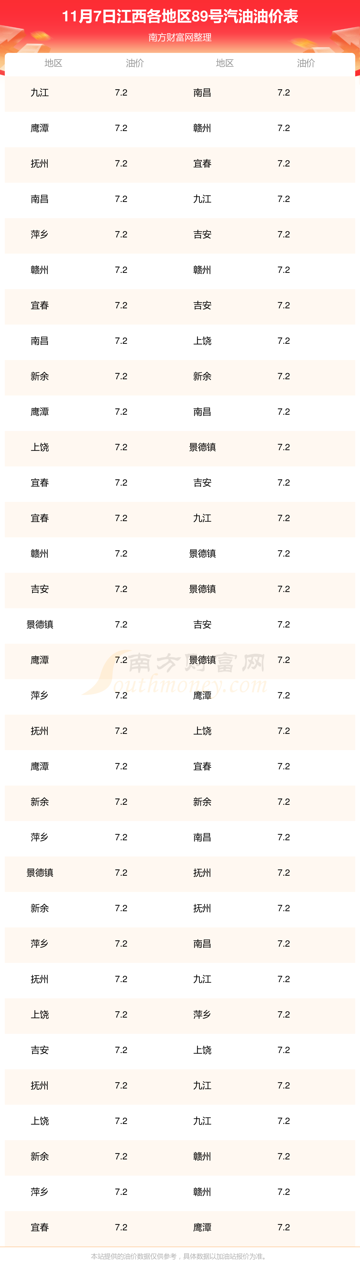 江西89號(hào)汽油油價(jià)調(diào)整表