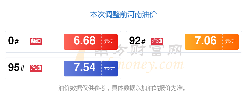 油價數(shù)據(jù)僅供參考,請以您所在地區(qū)的各加油站報價為準(zhǔn)。