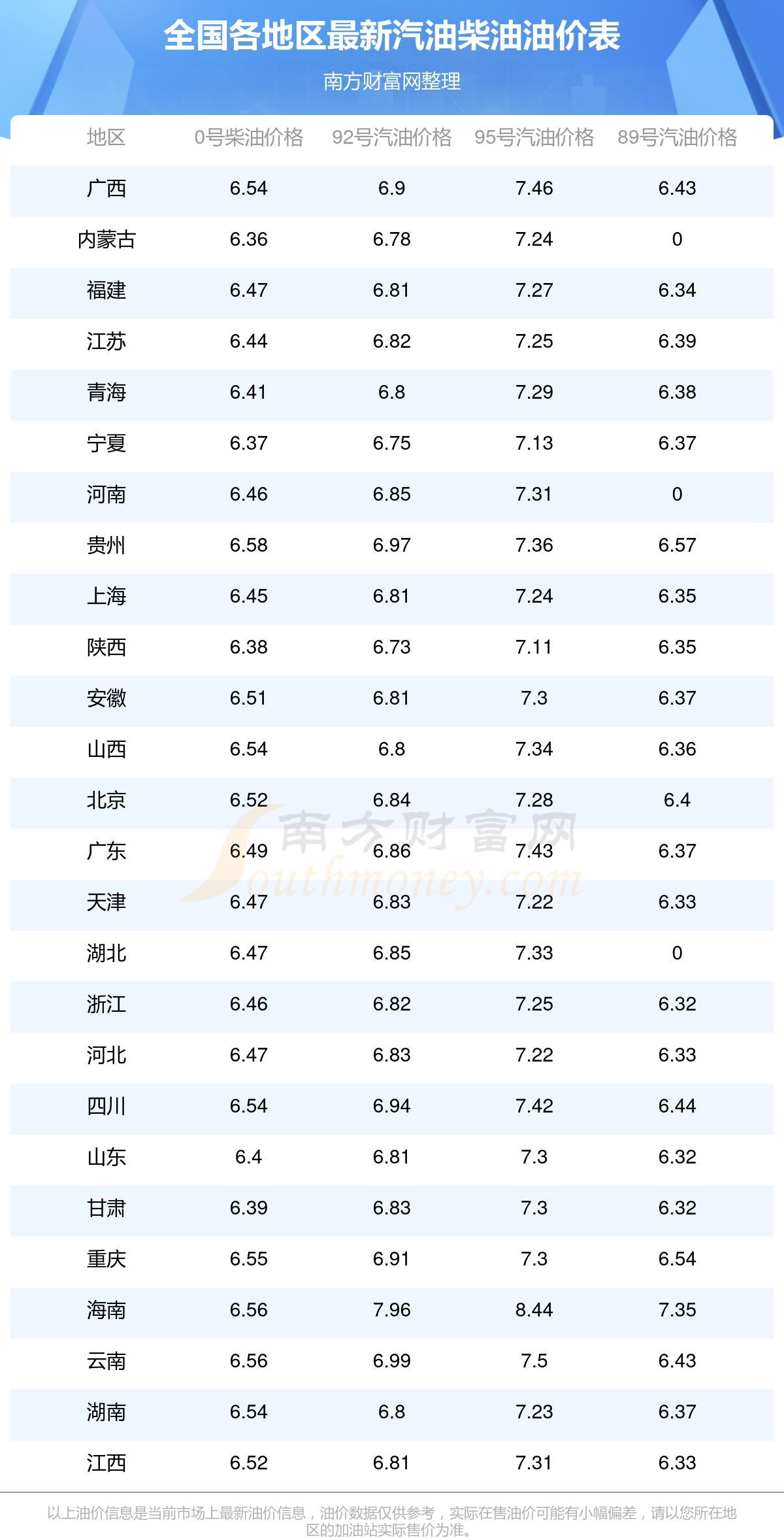 2025年11月7日全國(guó)油價(jià)調(diào)整及最新汽油價(jià)格表
