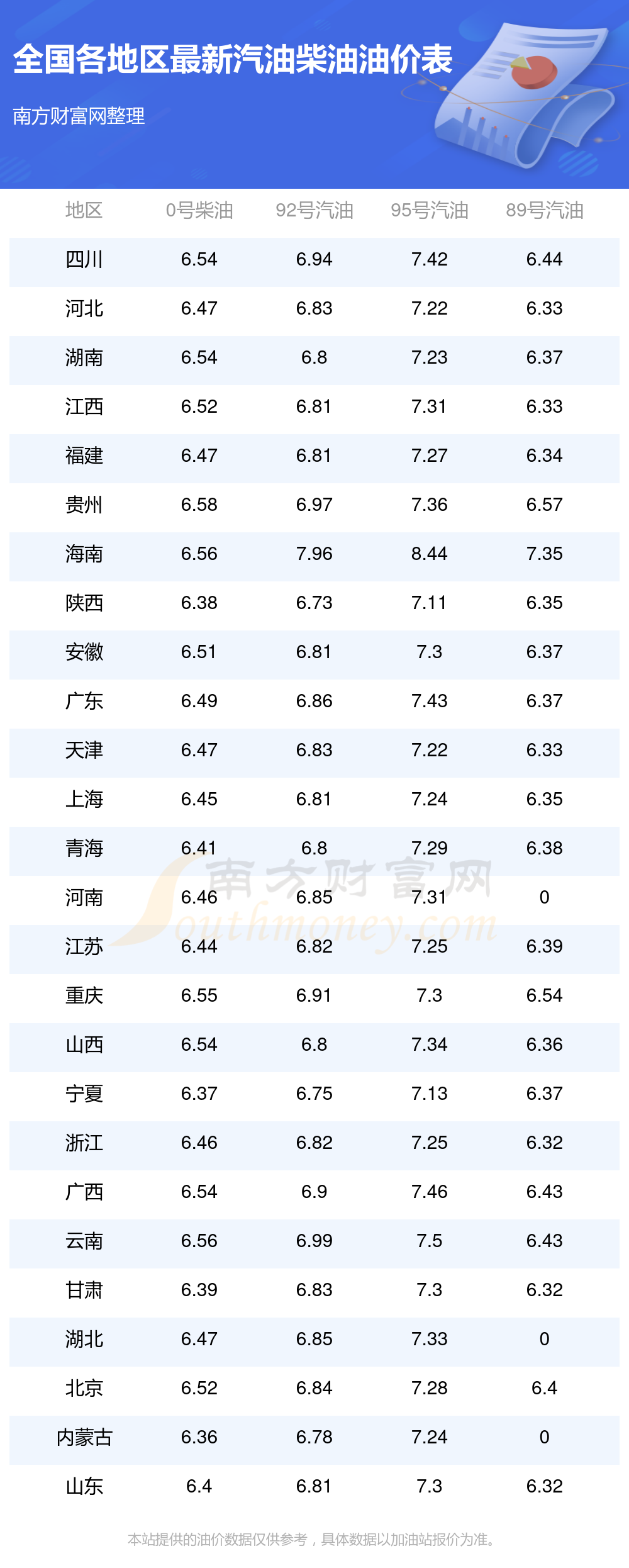 本輪油價調(diào)整時間為10月28日 ,調(diào)整后全國油價詳情為:
