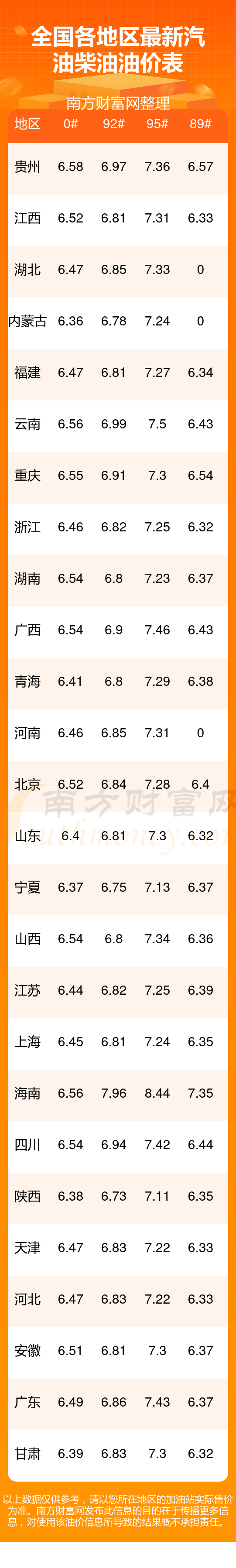 2025年11月7日全國油價調(diào)整及最新汽油價格表
