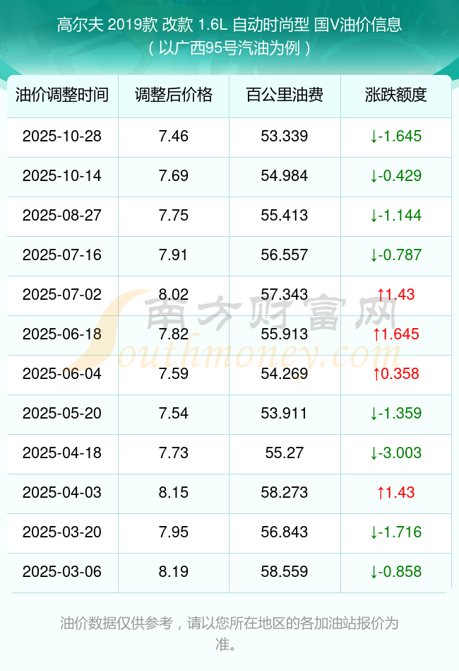 以上油耗數(shù)據(jù)由南方財(cái)富網(wǎng)整理提供,僅供參考。