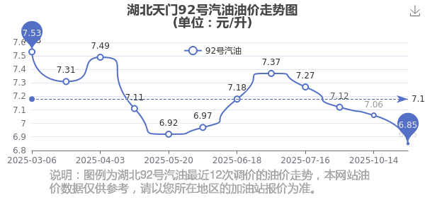 2025年湖北天門汽油價(jià)格歷史走勢圖