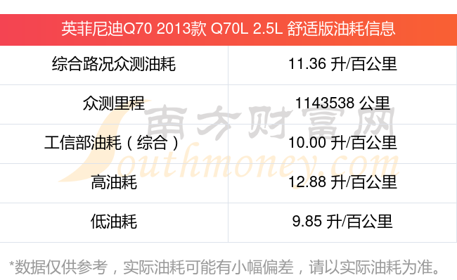 根據(jù)車主實(shí)測(cè)數(shù)據(jù),該車型低油耗為9.85升每百公里,高油耗為12.88升每百公里,綜合路況眾測(cè)油耗為11.36升每百公里,工信部綜合油耗為10.00升每百公里。
