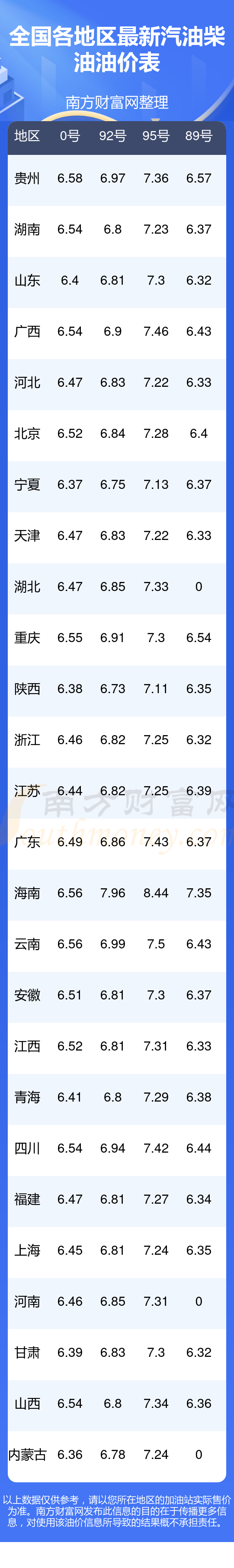 11月7日全國(guó)92、95汽油最新價(jià)格表