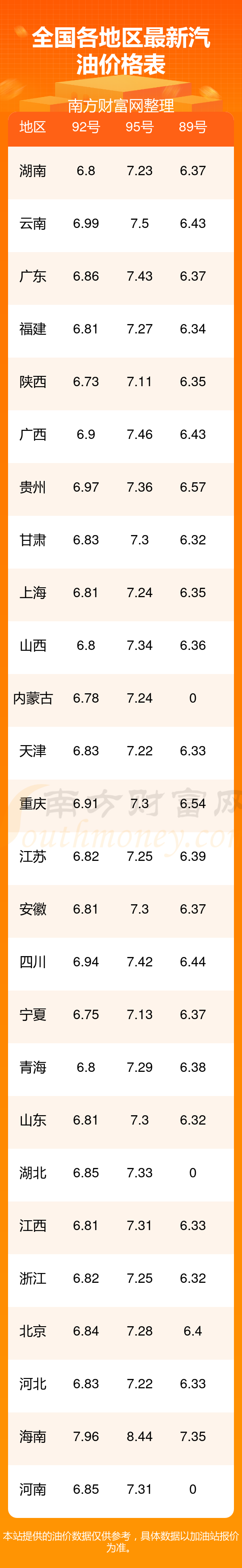 2025年11月7日全國油價調(diào)整及最新汽油價格表
