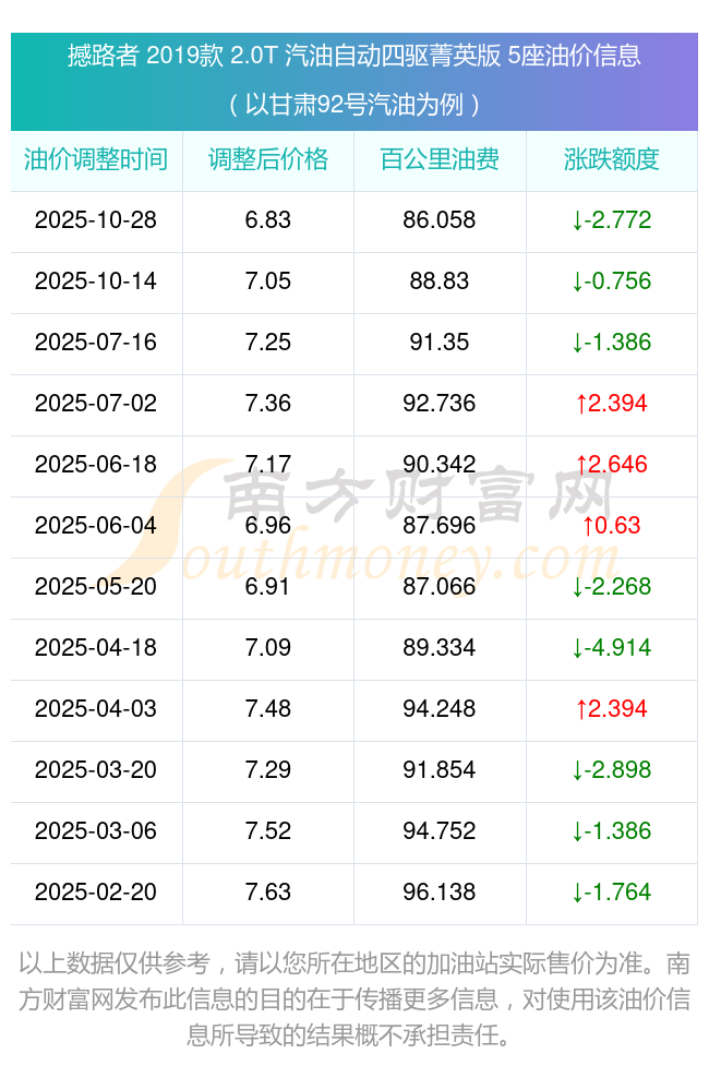 以上油耗數據由南方財富網整理提供,僅供參考。