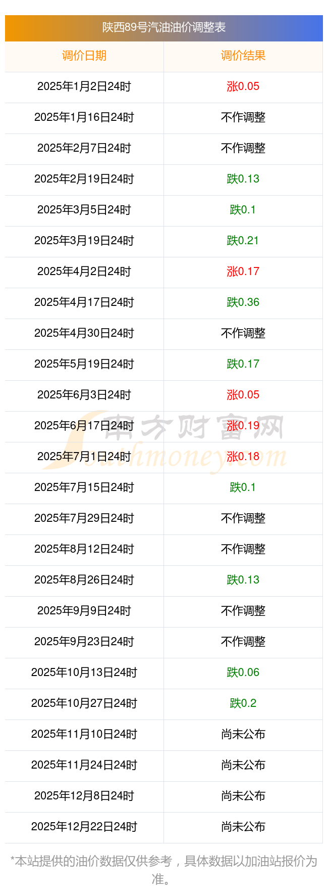 商洛汽油、柴油11月7日每升的價格為(油價調(diào)整時間是10月28日):92號汽油6.73元;95號汽油7.11元;89號汽油6.35元;0號柴油6.38元。下一輪油價調(diào)整時間11月10日24時,距離現(xiàn)在還有3.62天。