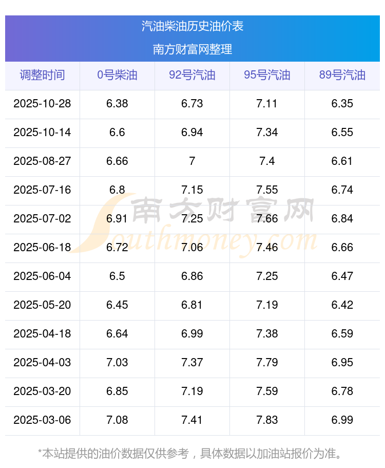 2025年油價(jià)調(diào)價(jià)窗口日期表: