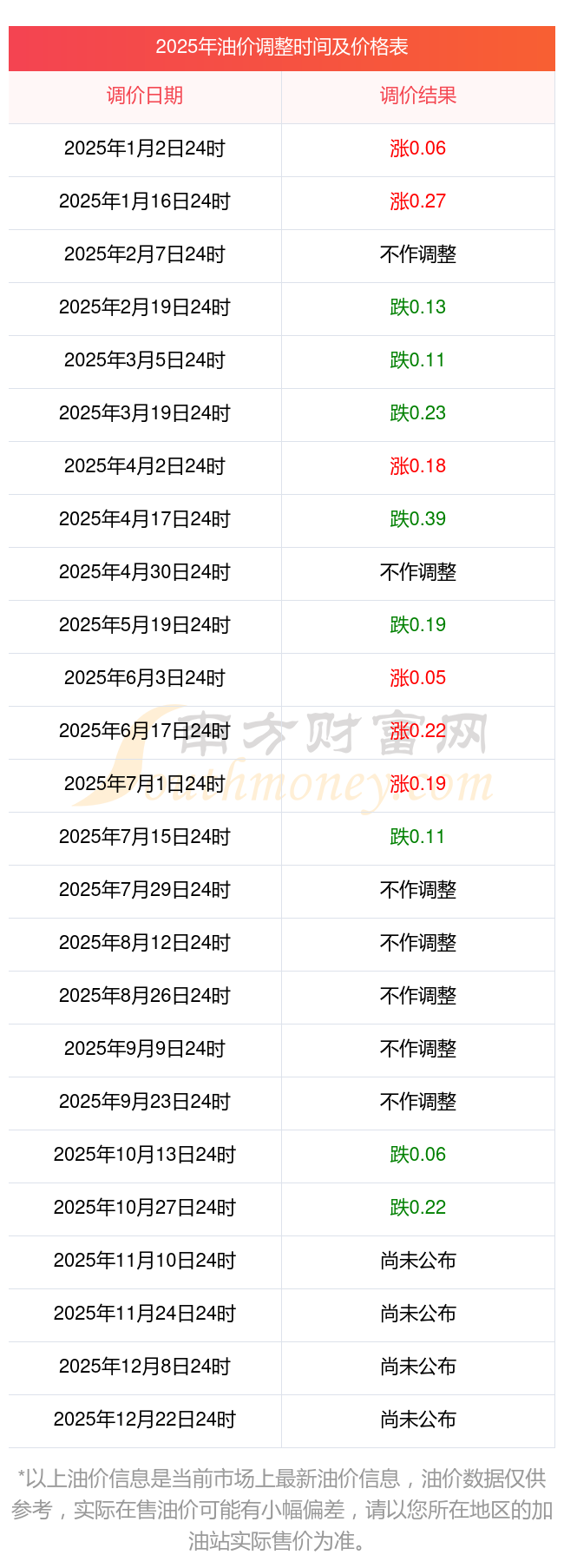 2025年平?jīng)龀缧趴h11月7日油價調(diào)整時間表