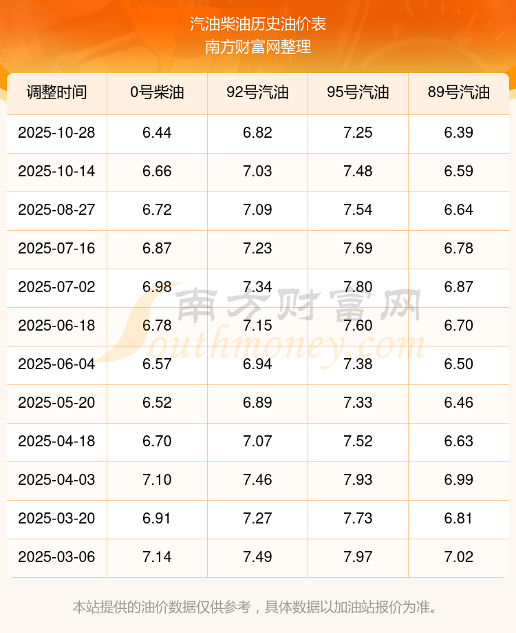 2025年95號(hào)汽油價(jià)格一覽表