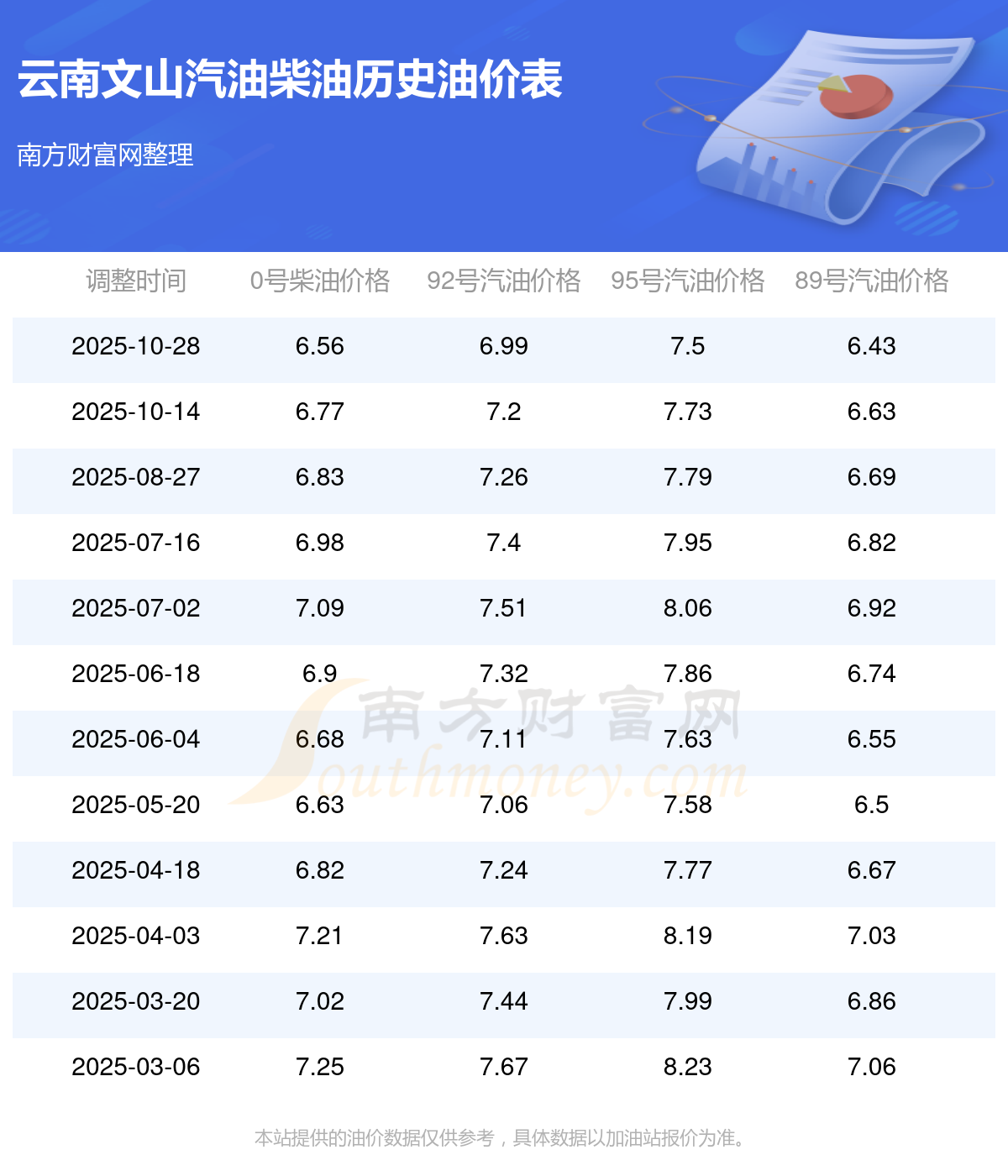 11月7日云南文山汽油、柴油每升的價格是多少?詳情如下:95號汽油為7.5元,減了0.23元;92號汽油為6.99元,減了0.21元;89號汽油為6.43元,減了0.2元;0號柴油為6.56元,減了0.21元,調(diào)整時間為10月28日。
