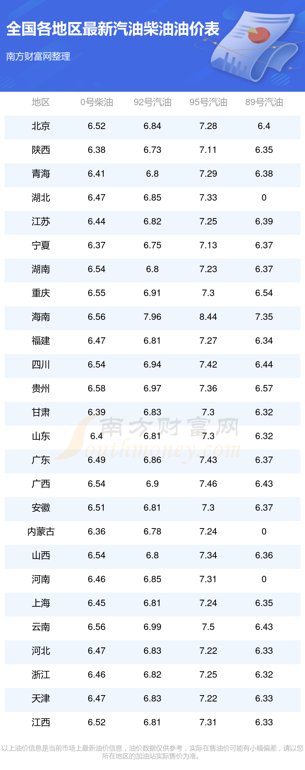 以上數(shù)據(jù)僅供參考,請以您所在地區(qū)的加油站實(shí)際售價(jià)為準(zhǔn)。南方財(cái)富網(wǎng)發(fā)布此信息的目的在于傳播更多信息,對使用該油價(jià)信息所導(dǎo)致的結(jié)果概不承擔(dān)責(zé)任。