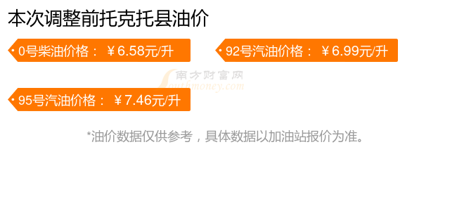 油價(jià)調(diào)整最新消息:托克托縣汽油、柴油11月7日每升的價(jià)格為(油價(jià)調(diào)整時(shí)間是10月28日):92號(hào)汽油6.78元;95號(hào)汽油7.24元;0號(hào)柴油6.36元。下一輪油價(jià)調(diào)整時(shí)間11月10日24時(shí)。