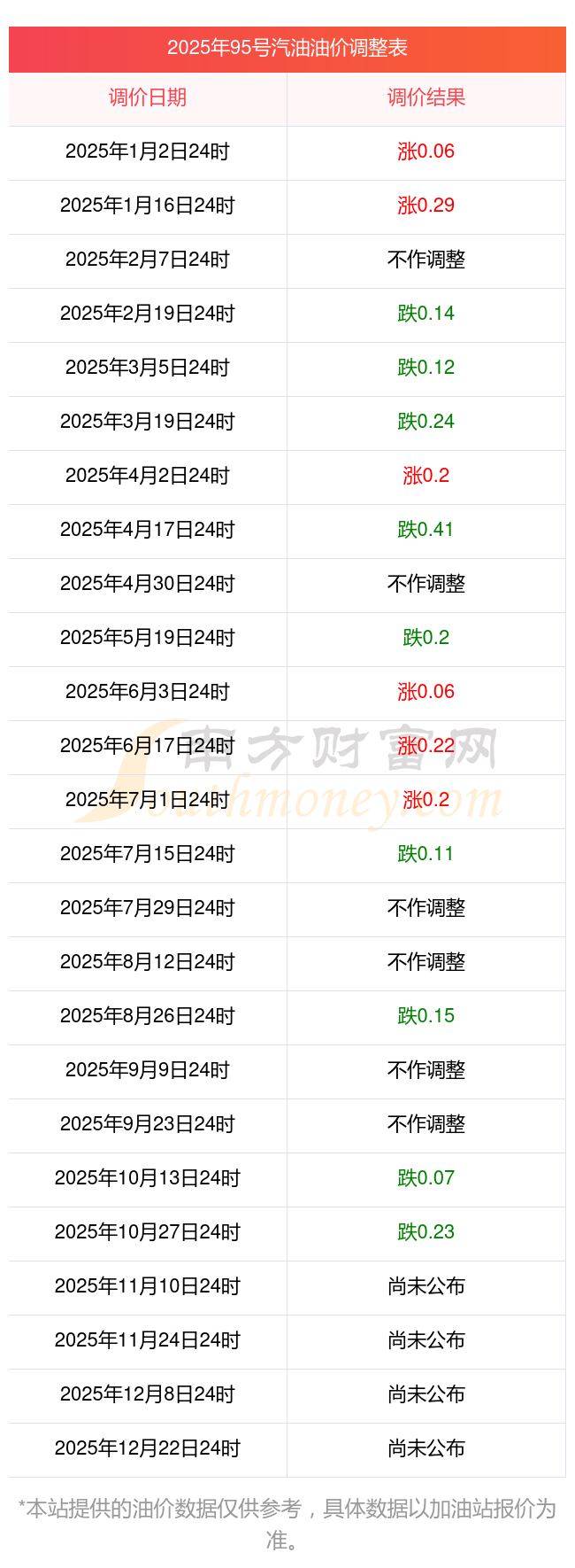 2025年11月7日全國(guó)油價(jià)調(diào)整一覽表
