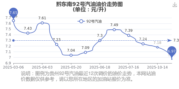黔東南最近調(diào)價的油價走勢圖