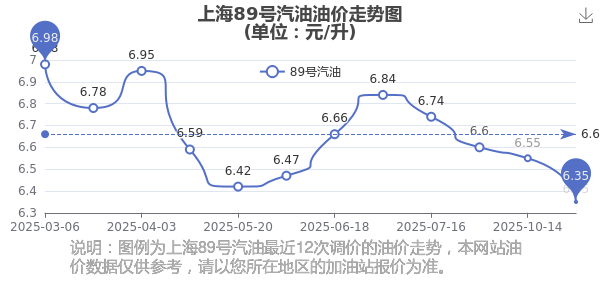 油價調(diào)整最新消息:上海汽油、柴油11月7日每升最新價格為:95號汽油為7.24元,降了0.23元;92號汽油為6.81元,降了0.21元;89號汽油為6.35元,降了0.2元;0號柴油為6.45元,降了0.22元,調(diào)整時間為10月28日。上海下一輪油價調(diào)整時間11月10日24時,距離現(xiàn)在還有3.57天。