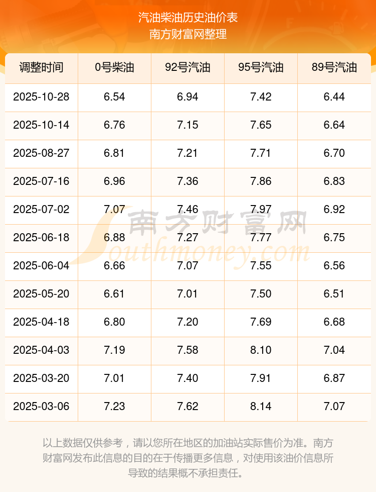 11月7日四川樂山92號汽油價格查詢:每升6.94元(10月28日油價調(diào)整后的價格),相對上次調(diào)整時間10月14日的油價7.15元每升,下降了0.21元,下降2.937%。下一輪油價調(diào)整時間11月10日24時,距離現(xiàn)在還有3.55天。